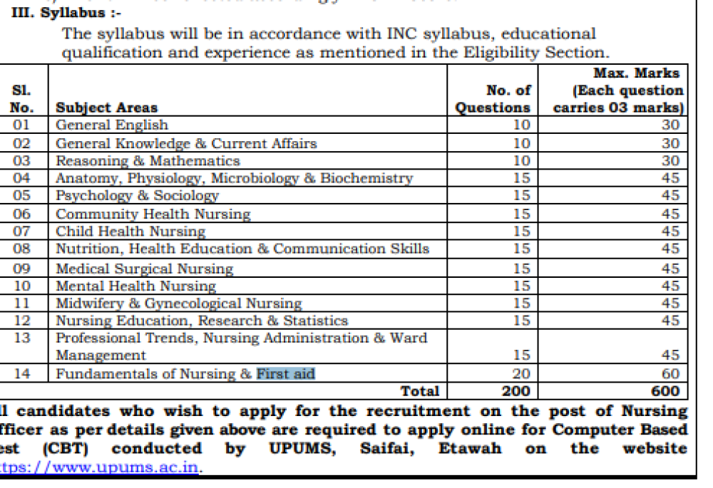 UPUMS Staff Nurse Syllabus 2026 | Exam Pattern PDF Download