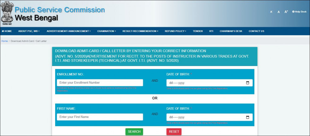 | OBC(অন্যান্য ব্যাকওয়ার্ড) | Rs.160 + Service Charge |